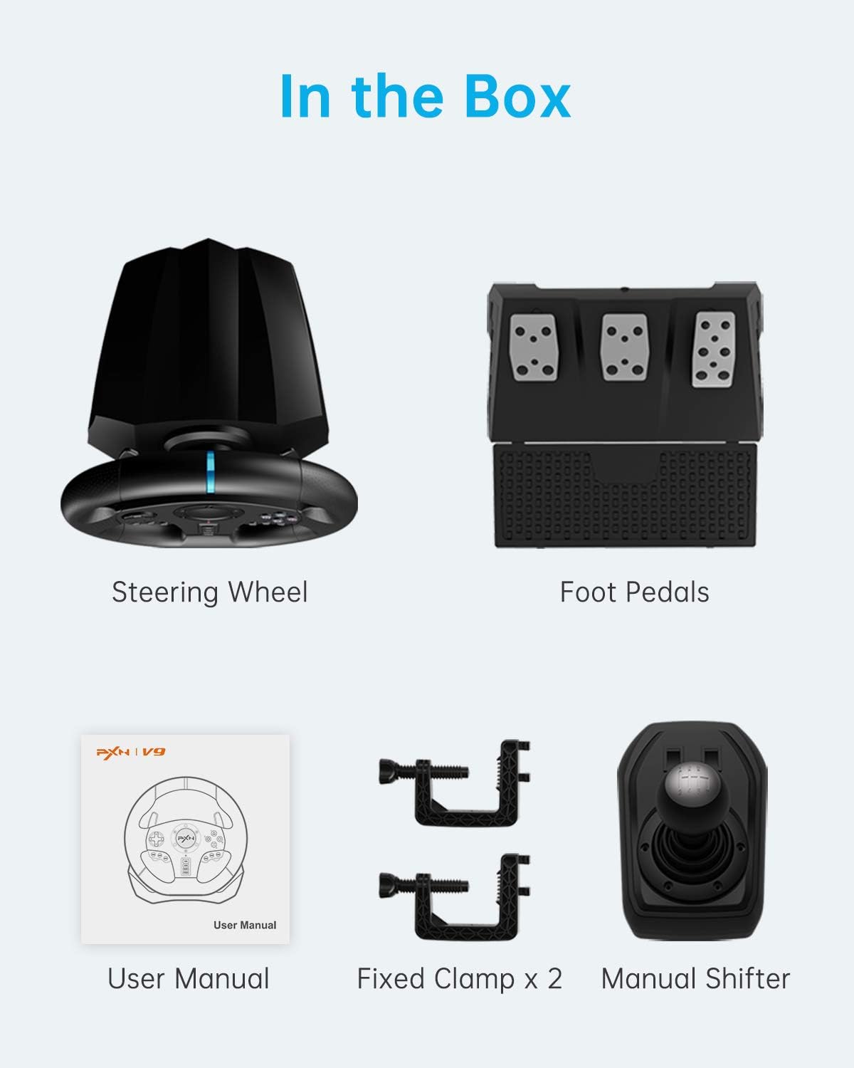 PXN V9 Gaming Racing Wheel with Pedals and Shifter, Steering Wheel for PC, Xbox One, Xbox Series X/S, PS4, PS3 and Nintendo Switch