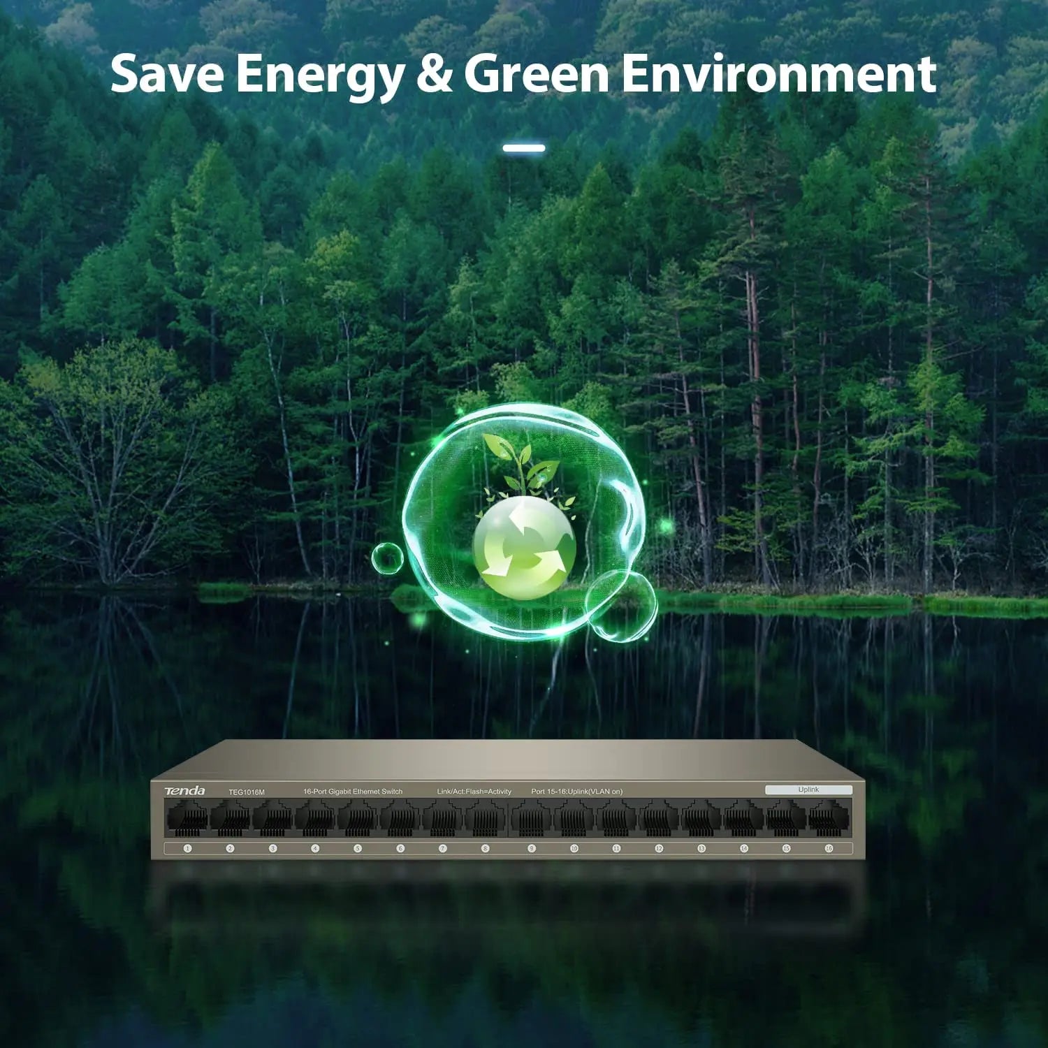 Gigabit Ports to Extend Network - 16 10/100/1000 Mbps auto-negotiation RJ45 ports. The full-duplex transmission rate of the switch can reach 2000 Mbps, and all ports feature wire speed forwarding, ensuring high performance for processing applications that require high bandwidth