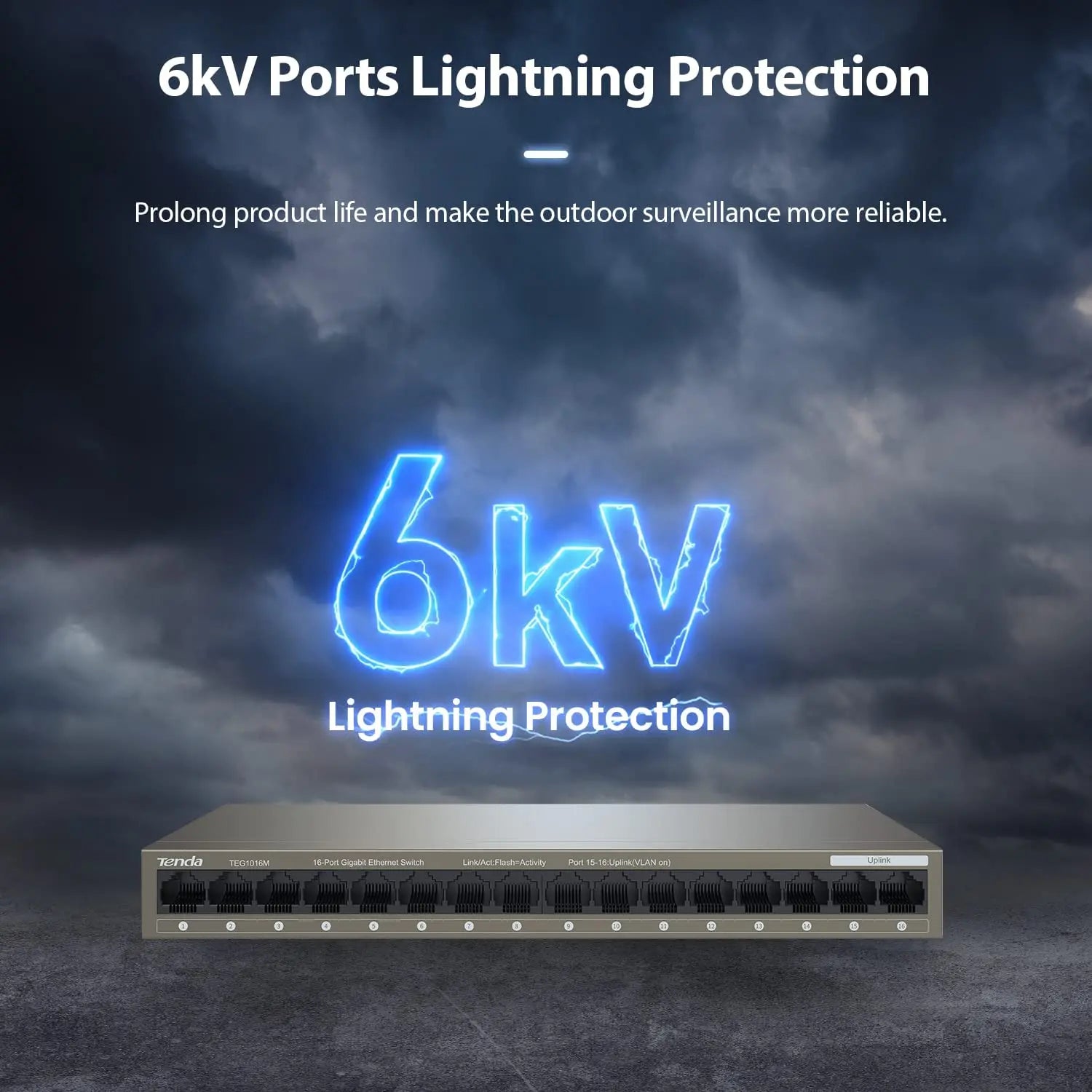 6kV Ports Lightning Protection - It is rugged and durable, and has excellent heat dissipation capacity. It provides 6kV lightning protection for all ports, which helps to prolong the product life and make the outdoor surveillance more reliable