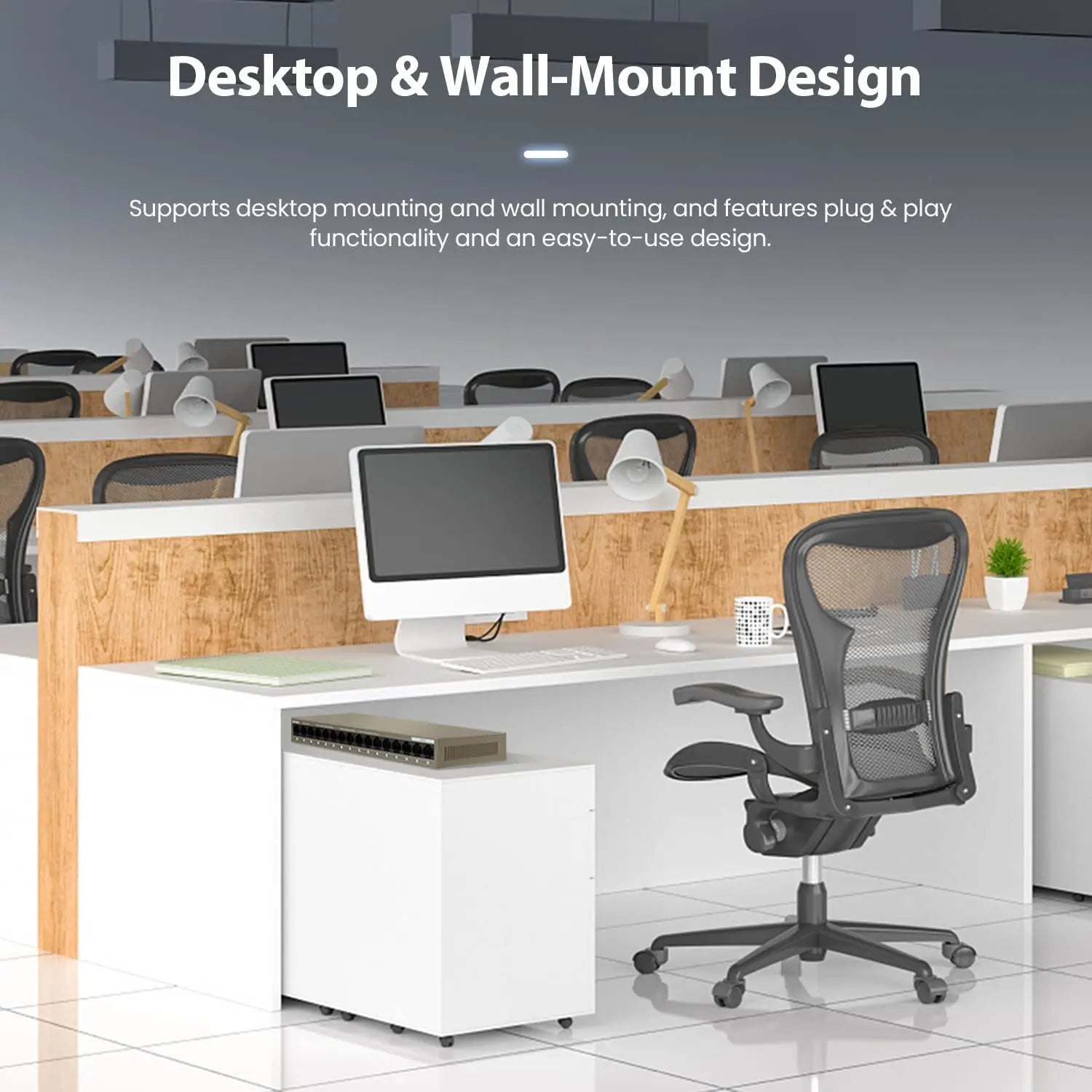 Plug and Play & Wall Mount Design - It supports desktop mounting and wall mounting, and features plug & play functionality and an easy-to-use design